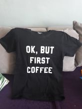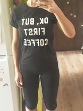 THE COOLMIND Casual O-Neck Knitted woman T-Shirt Quality Loose Cotton Short Sleeve ok but first coffee Printed Women T Shirt