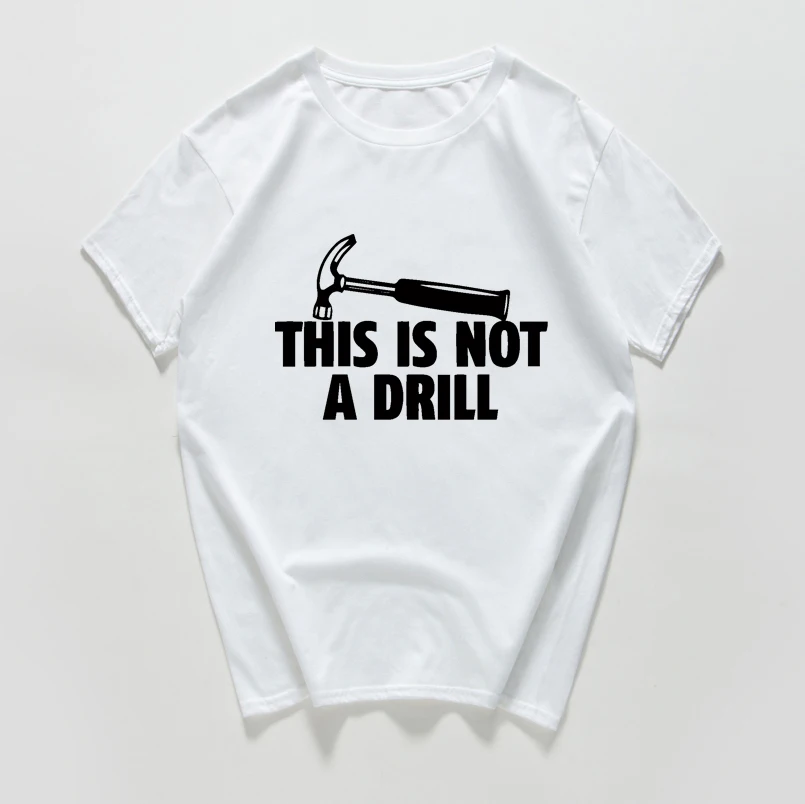 This Is Not A Drill Funny T Shirt Men 100% Cotton T-Shirt Hammer Repair Dad Joke top Geek cool Nerd Tee shirt home men Clothes