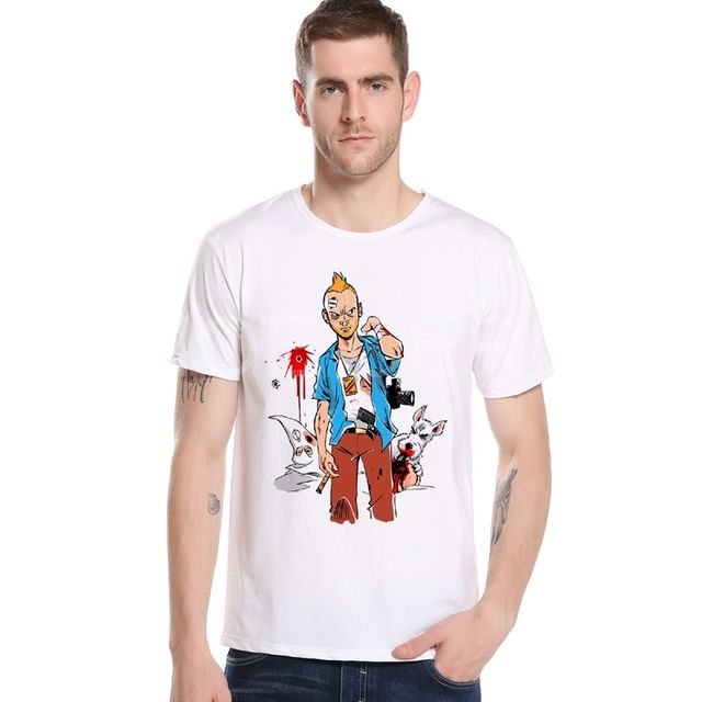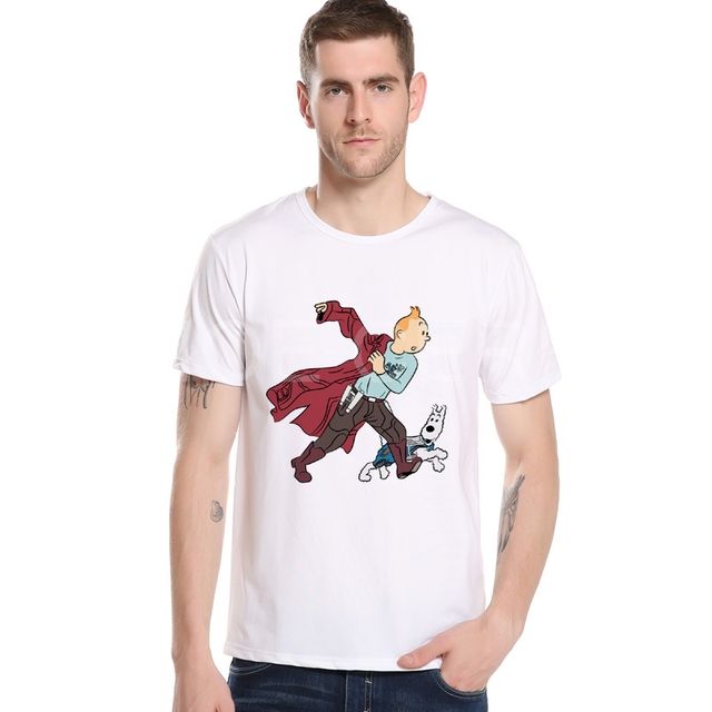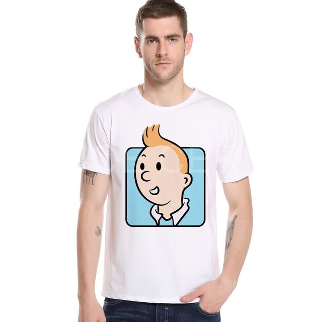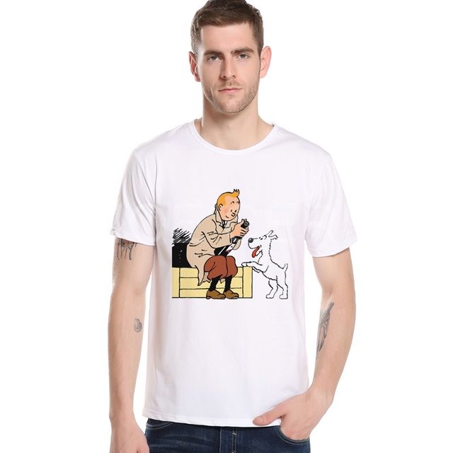 Tintin Adventure Classic Animation Cartoon T-shirt Top Men T shirt New Design Brand Summer Mens t-shirt Man Top Tees M24-3#