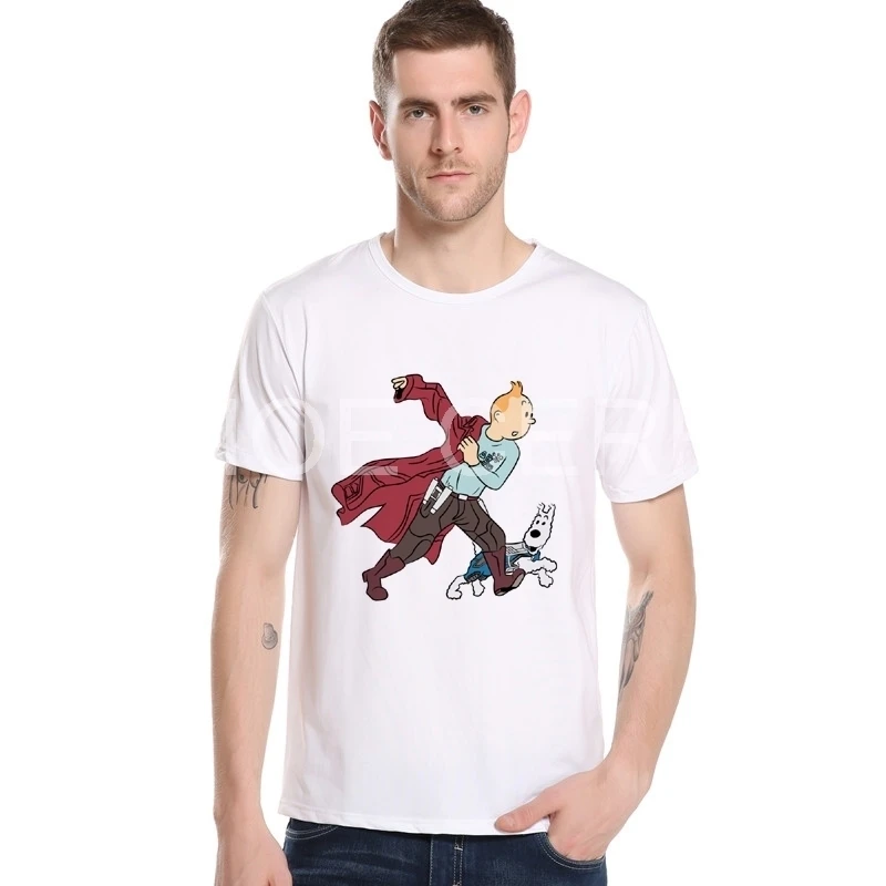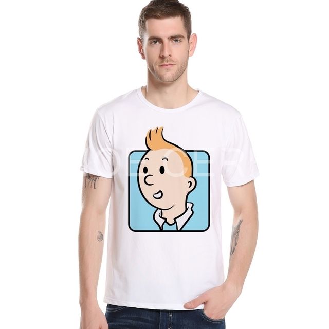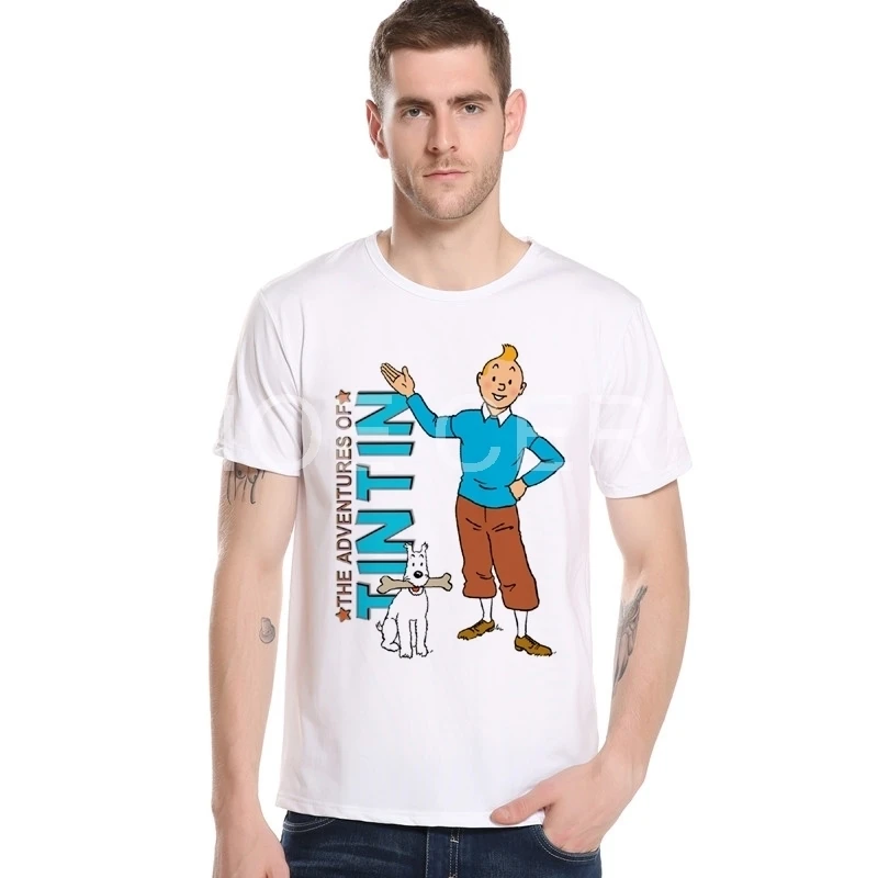 Tintin and his dog Snowy T Shirt TINTIN T-shirt Top Fashion Brand t shirt Men New High Quality Casual Tee Shirt for youth M24-2#