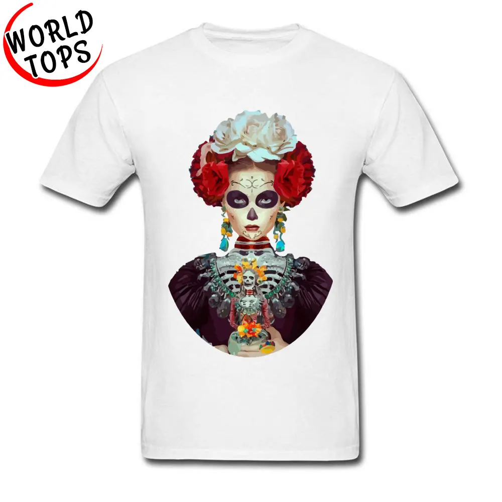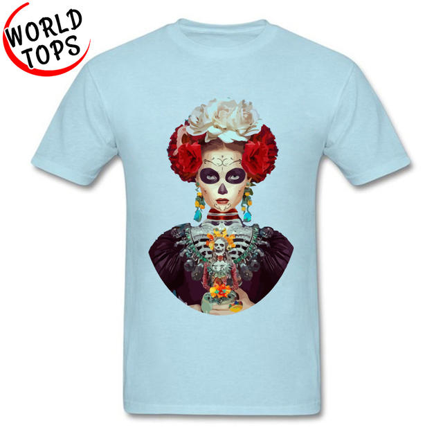 Top Quality Nice T-Shirt 100% Cotton Crew Neck Men Tops Shirt Printed Day Of The Dead Girl Mural Skull Skeleton Painting Tshirt