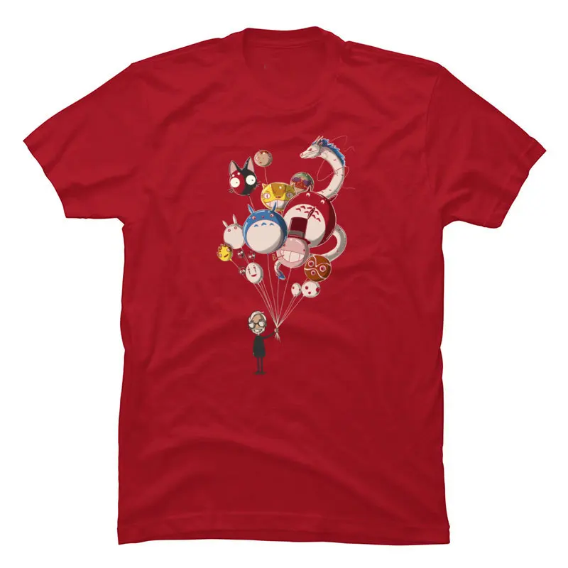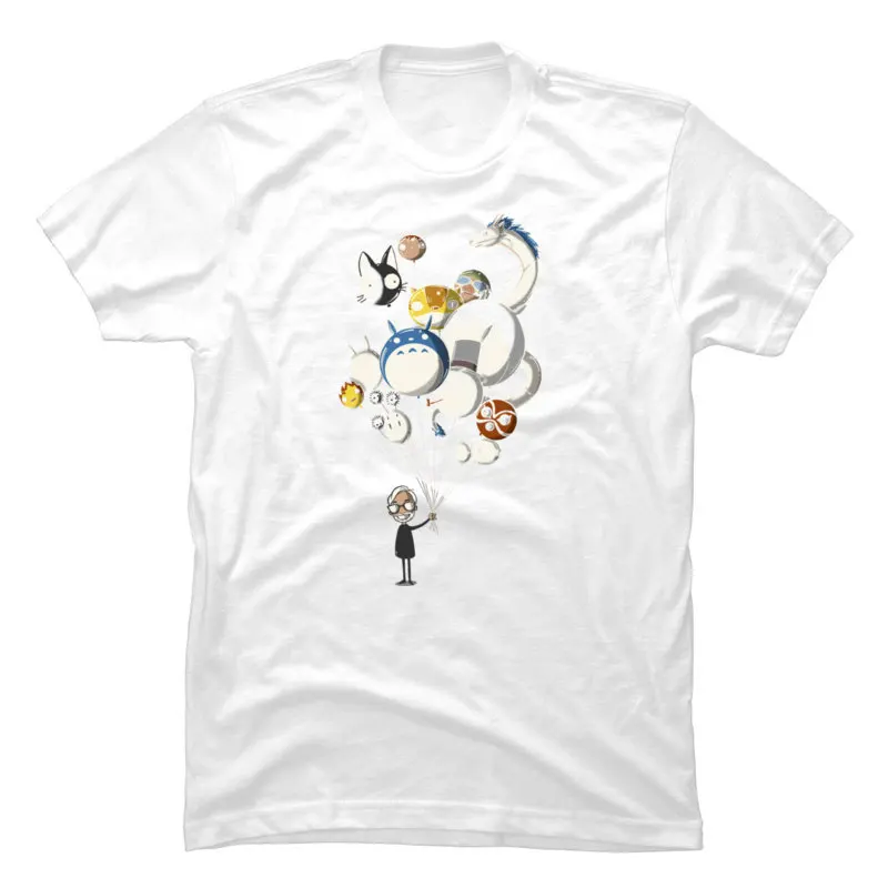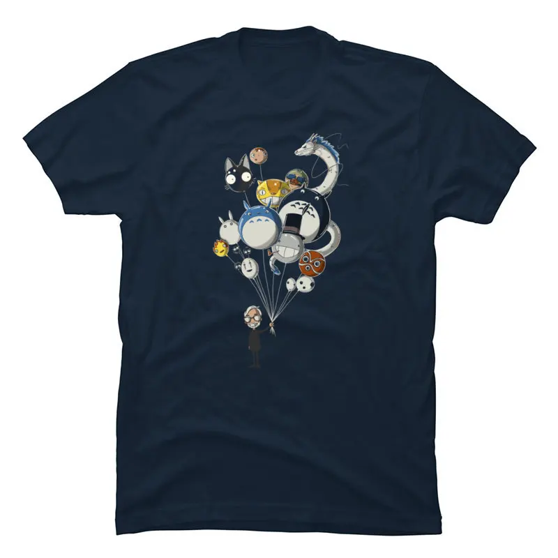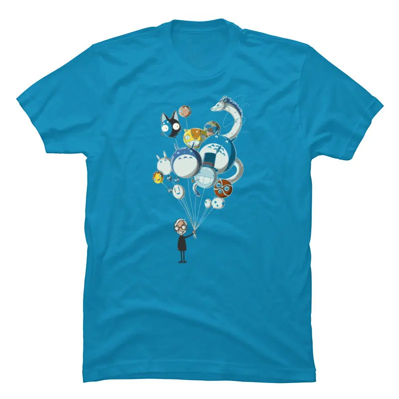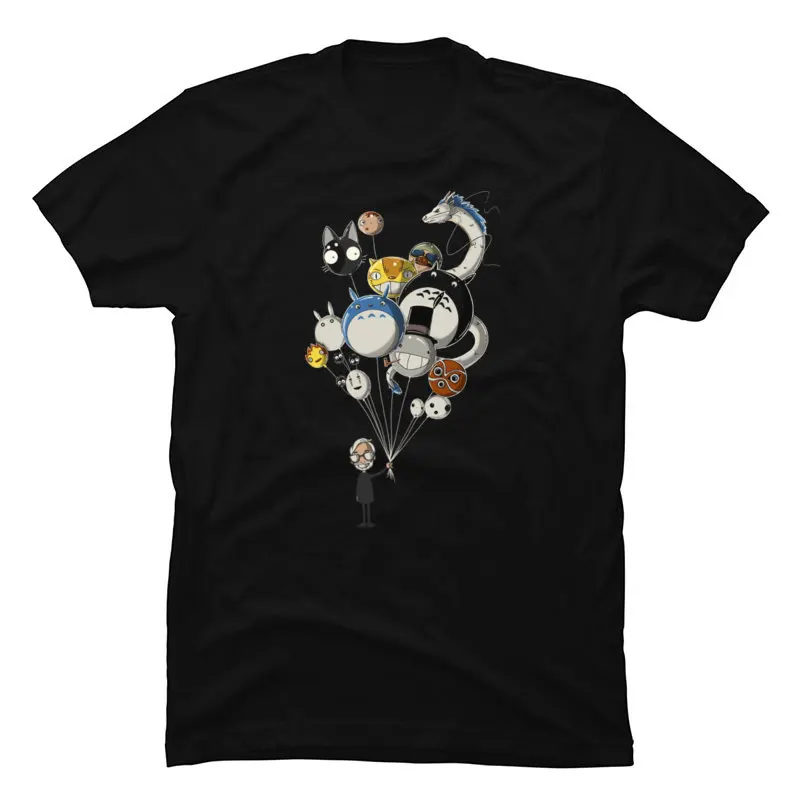 Totoro Miyazakis Balloons Funny Top T-shirts Spirited Away No Face Ghibli Tororo Anime Graphic 100% Cotton Men Tops & Tees