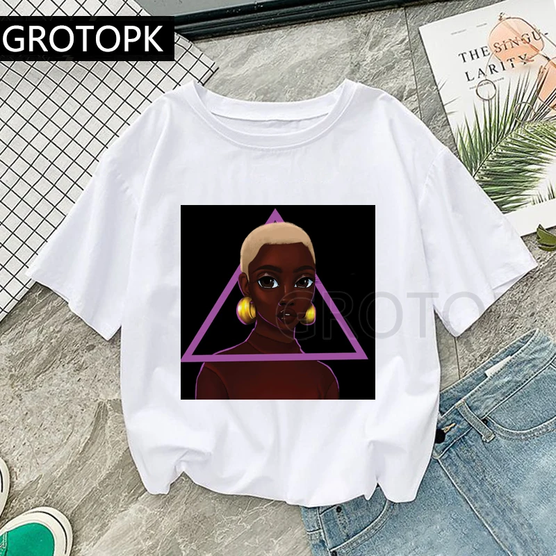 Triangle T Shirt Women Ullzang Vintage Graphic Black Girl T-Shirt Funny Cartoon 90S Tshirt Korean Style Top Tees Female