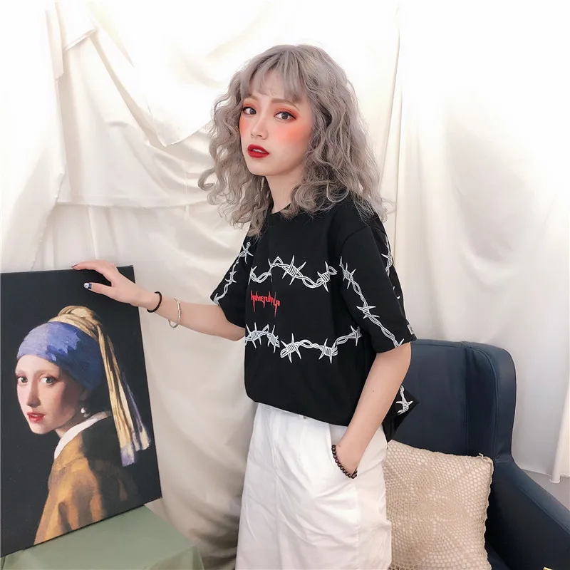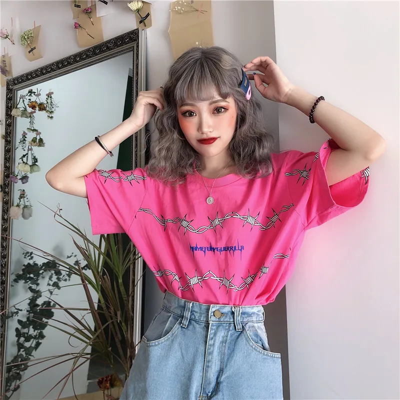 Tumblr Cute casual Harajuku Cotton Korean women T-shirt Summer fashion letter printing loose chic kawaii pink plus size tops tee