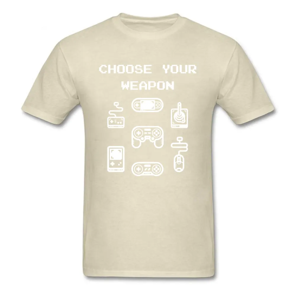 TV PC Controllers Gamer Tshirt Choose Your Weapon Video Game Unit Funny T Shirt O-Neck 100% Cotton Fabric Men T-shirts