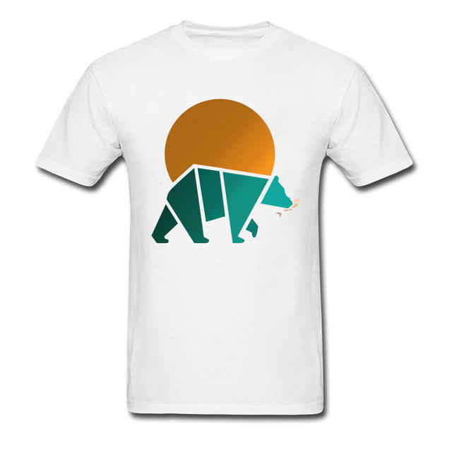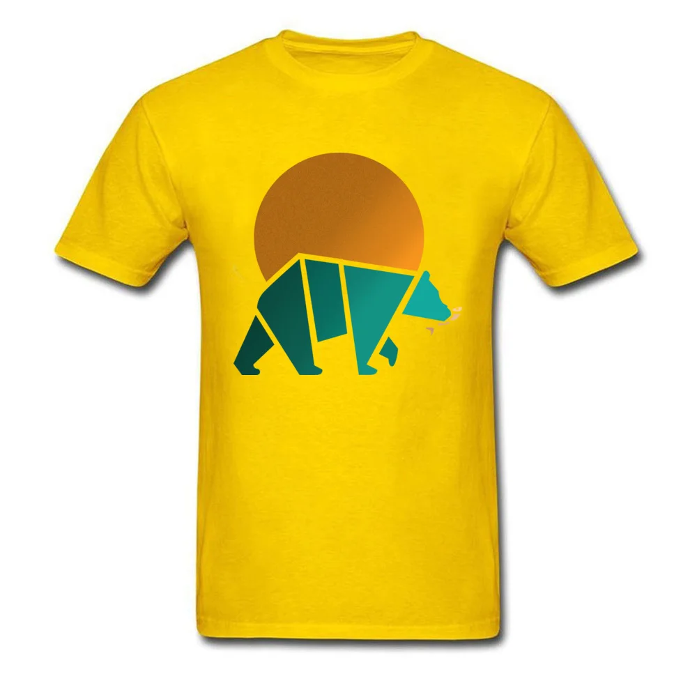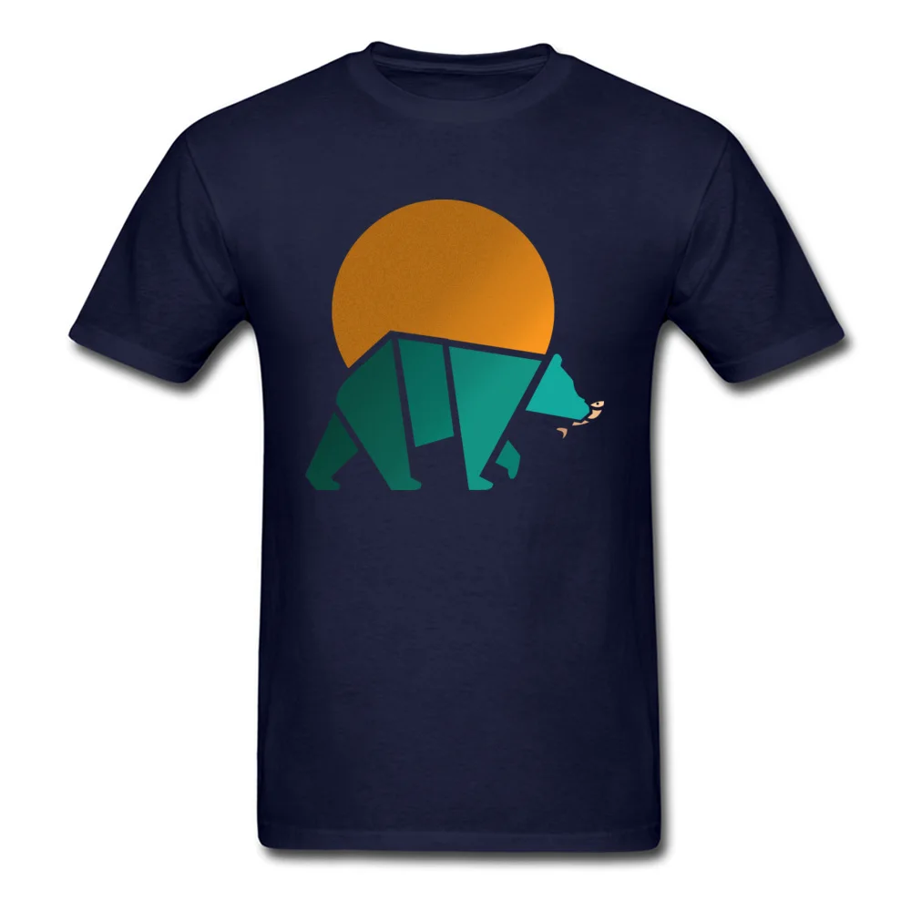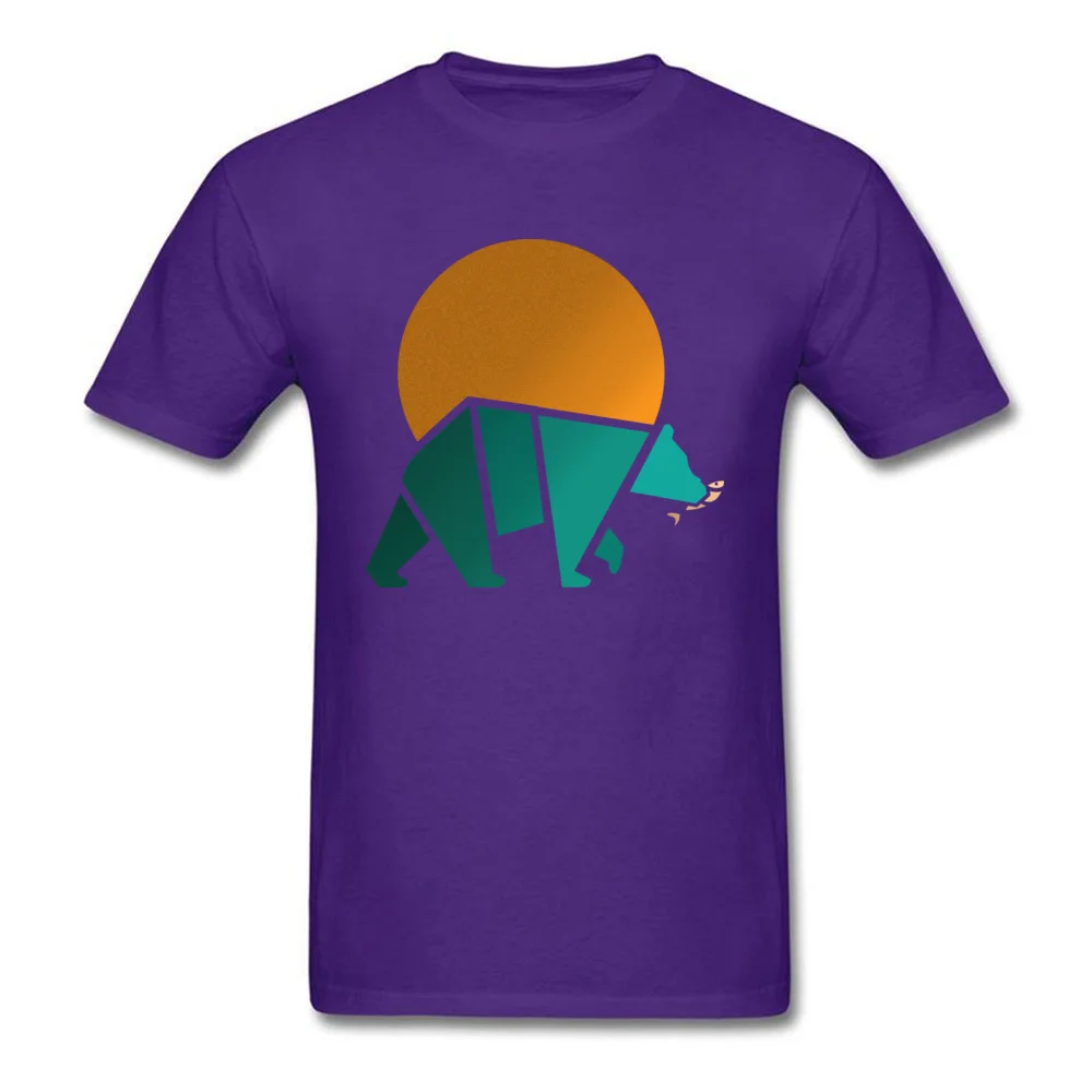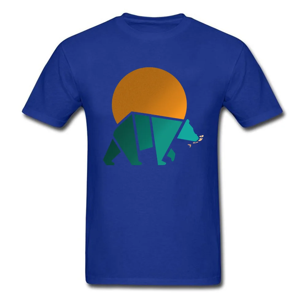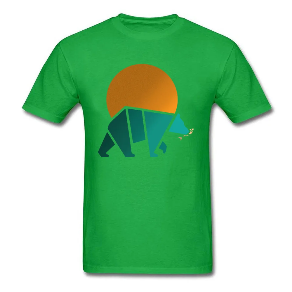 Product Name: New Fractal Graphic T Shirt Wildlife Bear Carrying The Fish Men Tshirt Orange Sunset Men's Hip Hop Simple Funny T-Shirts Guys
