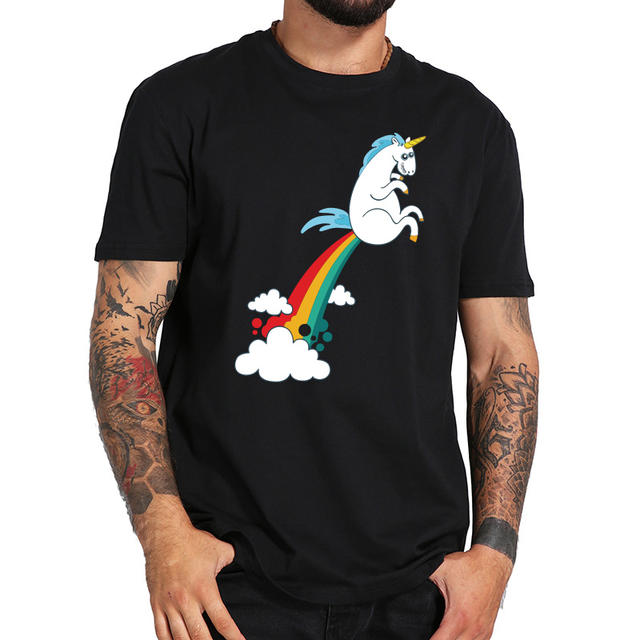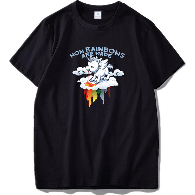 Unicorn T Shirt Rainbow Funny Spoof High Quality 100% Cotton White Black Tops Cartoon T-shirt Gift EU Size