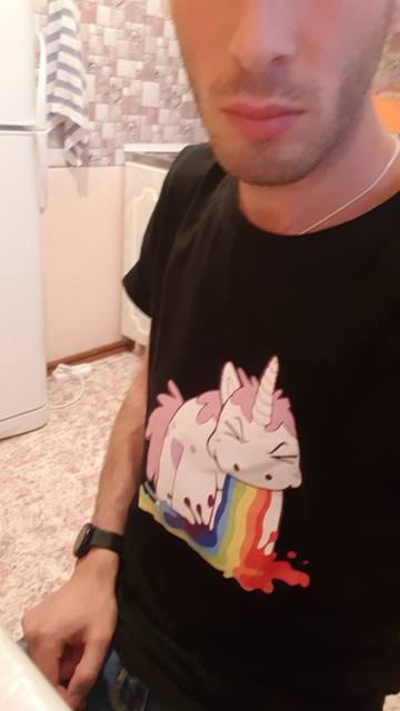 I take the second shirt from this store. Delivery in time, the size is a little bigger, on black t-shirts everything is clear.