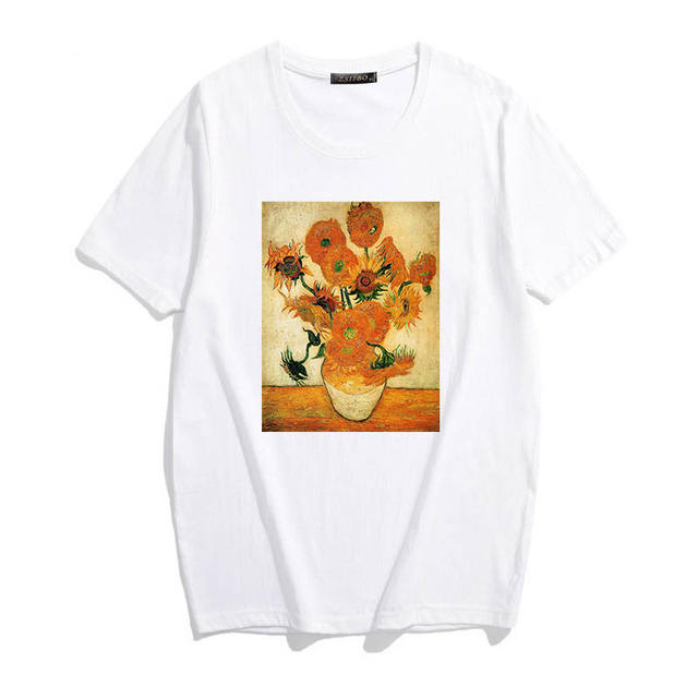 Van Gogh Art oil painting retro sunflower casual short sleeve female summer Harajuku T-shirt Aesthetic cute casual loose tops
