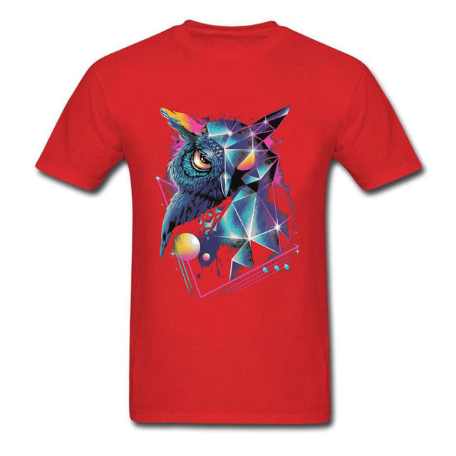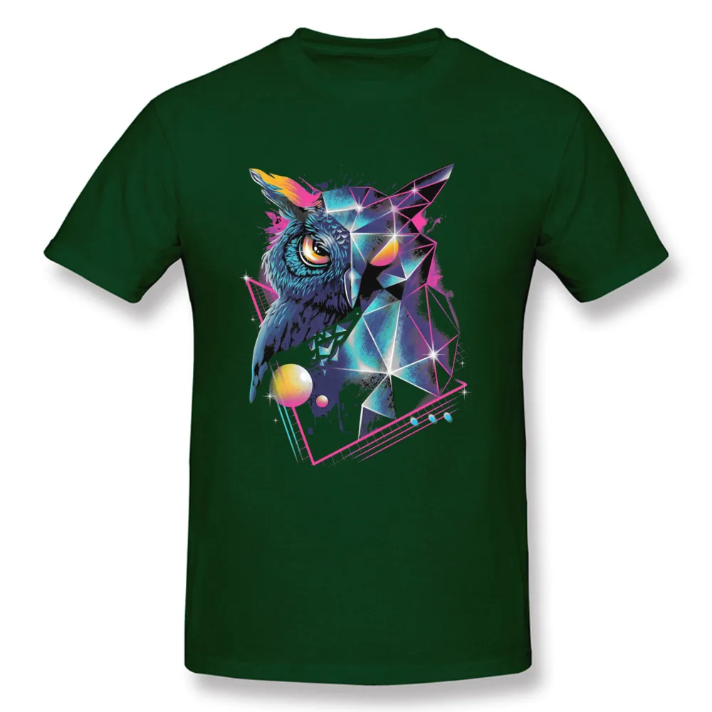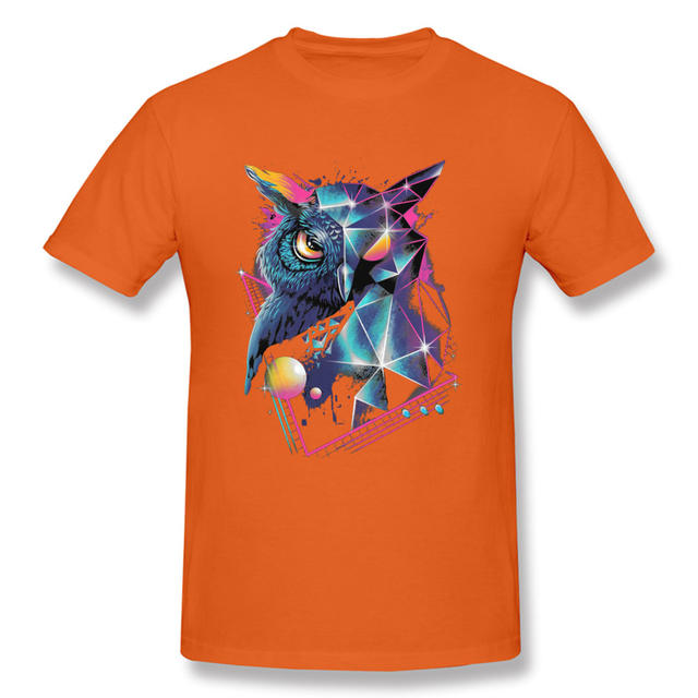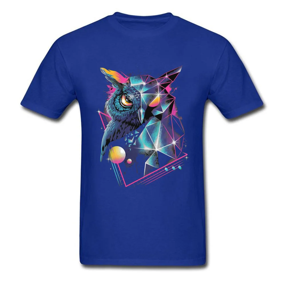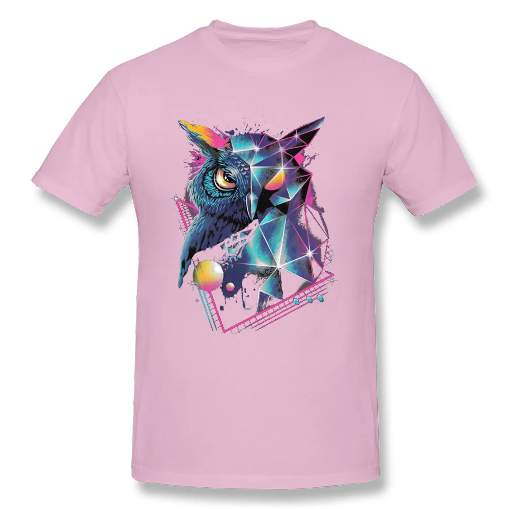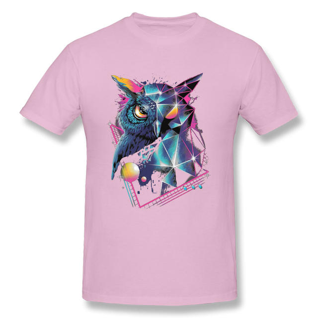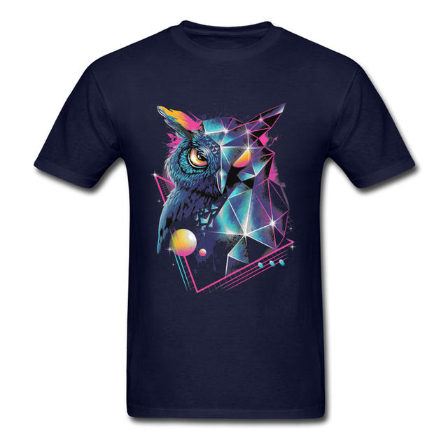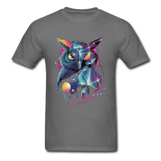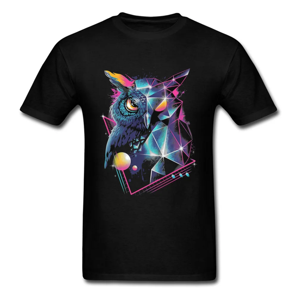 Vaporwave Neon Geometric Owl Black Tshirt Men Art Design Mysterious Geometry Patterns Autumn 100% Cotton Crew Neck Tops & Tees