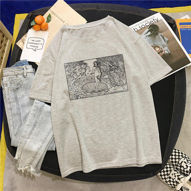Vatican plateau simple personality printing female street fashion chic T-shirt Summer casual large size Ulzzang Gray tops tee