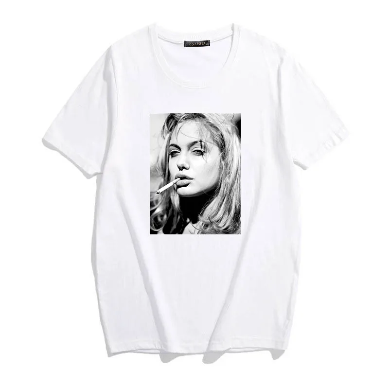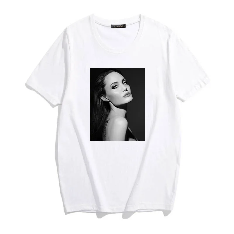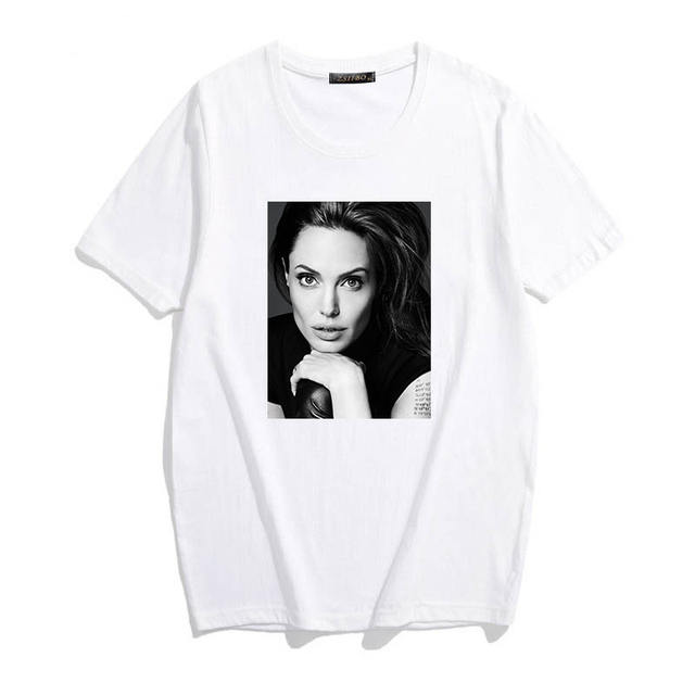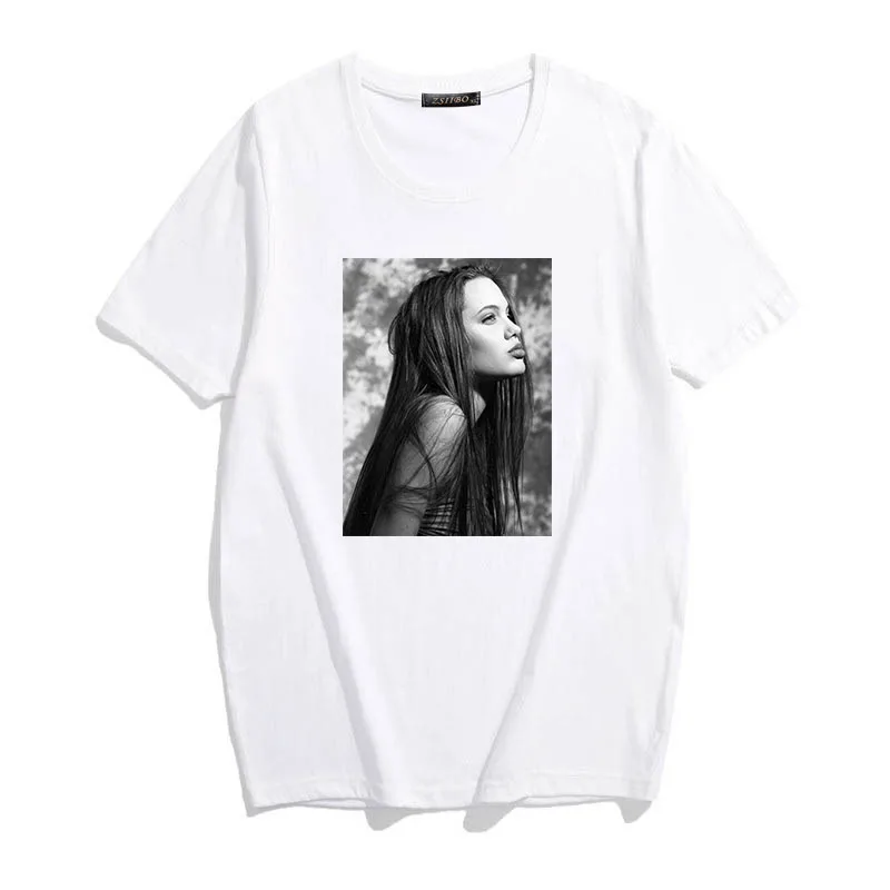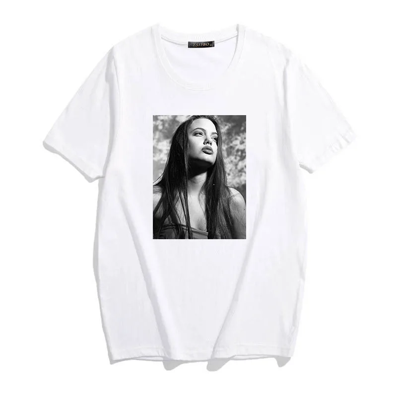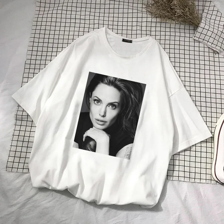 Vintage Angelina Jolie beautiful Retro fun print women’s T-shirt New Summer Casual Fashion Harajuku Ladies loose O-Neck Top Tees