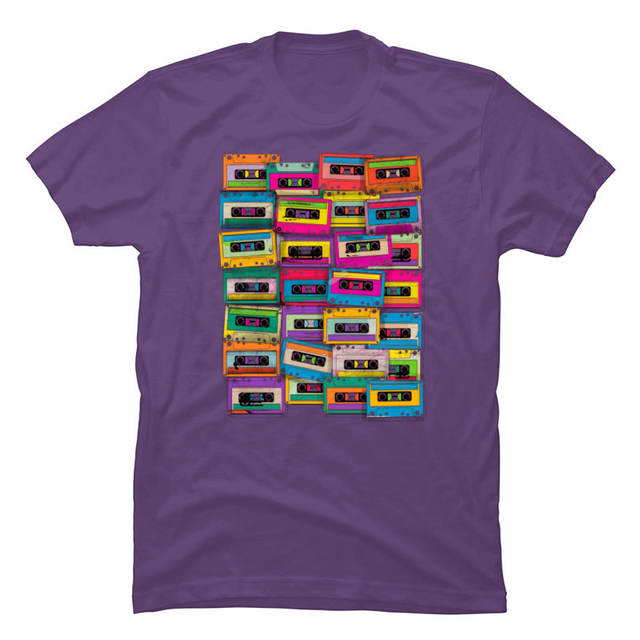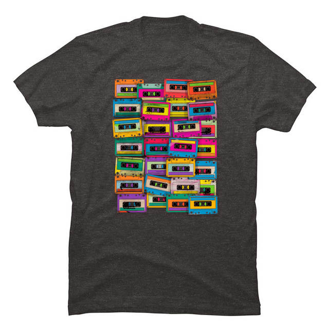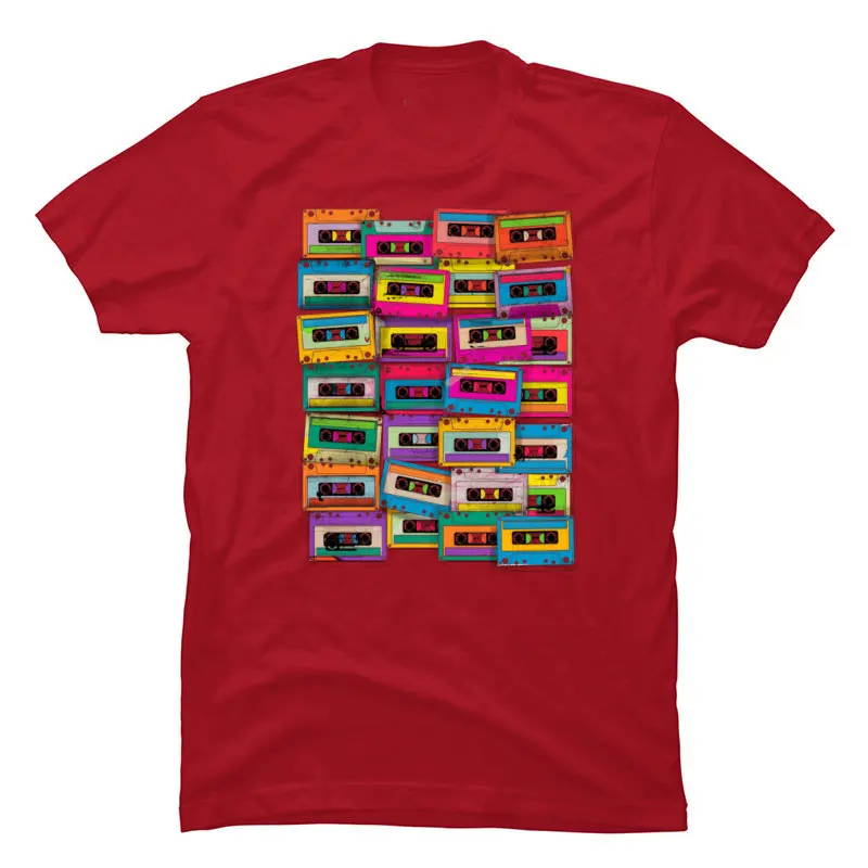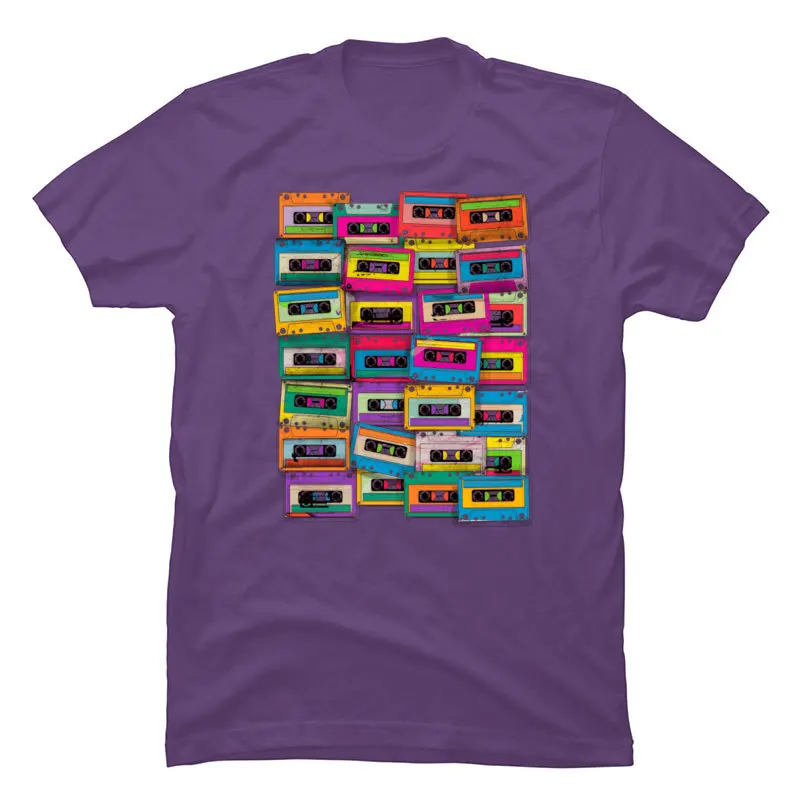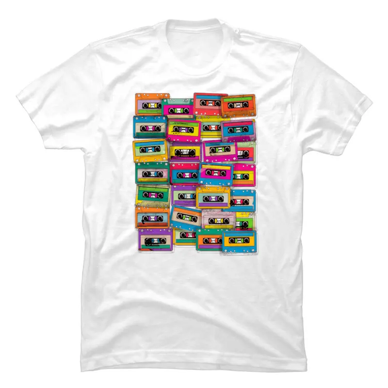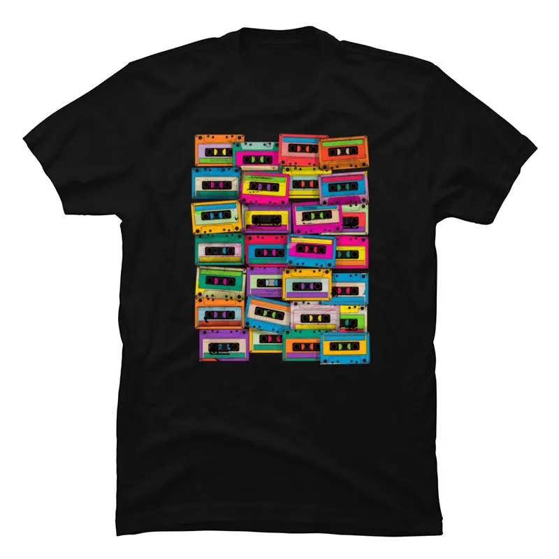 Vintage Neon Cassette Tape Music T Shirt DJ Rock Hip Hop Popular Tshirts For Men 2019 100% Cotton Fabric Autumn Tops Shirts