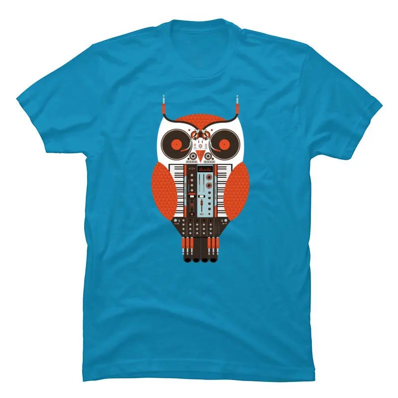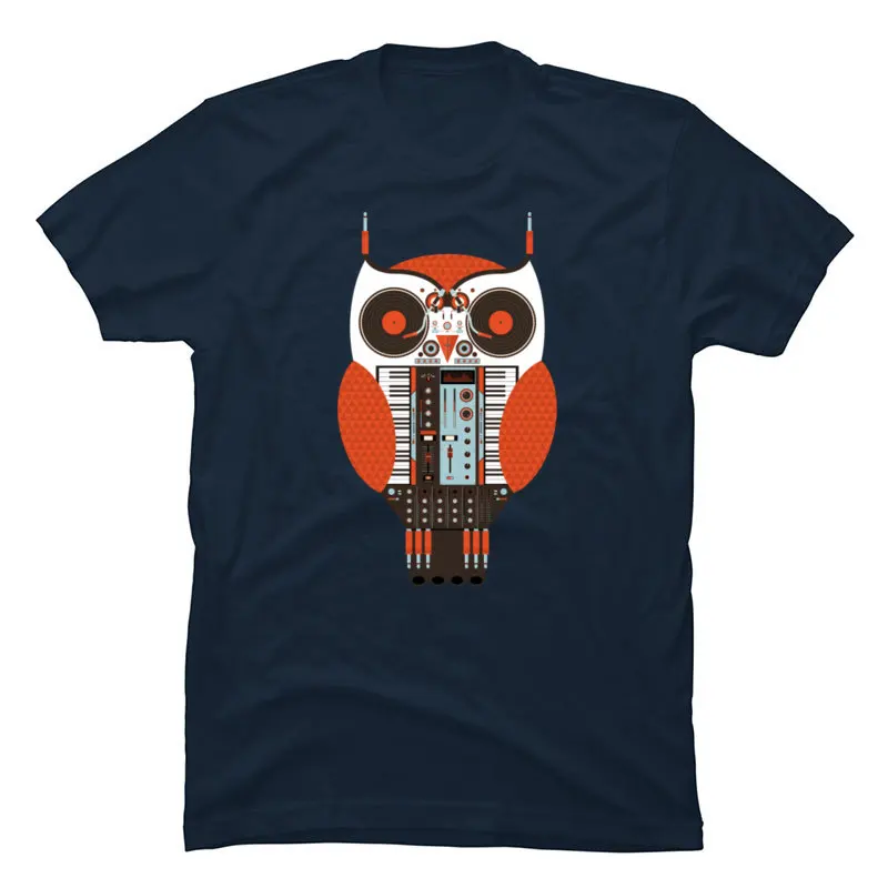 Vintage Owl Synthesizer T-Shirt Techno Synth Electron DJ Funny Tshirt Casual Tops Shirt 100% Cotton Short Sleeve Men Camiseta