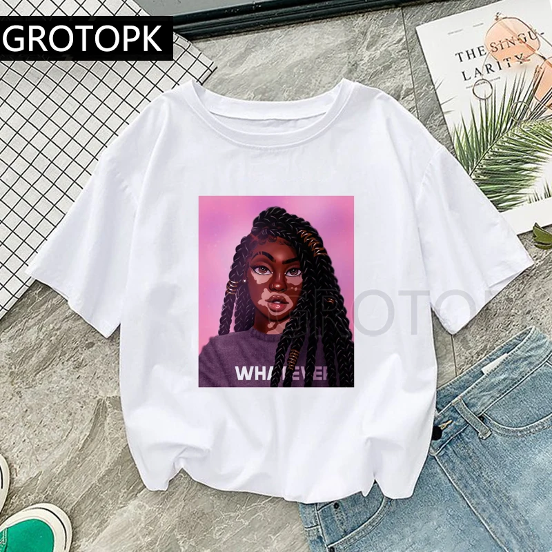 Vitiligo QueenT-Shirt Women Harajuku Black Girl T Shirt Summer White Short Sleeve Camisetas Mujer Clothing