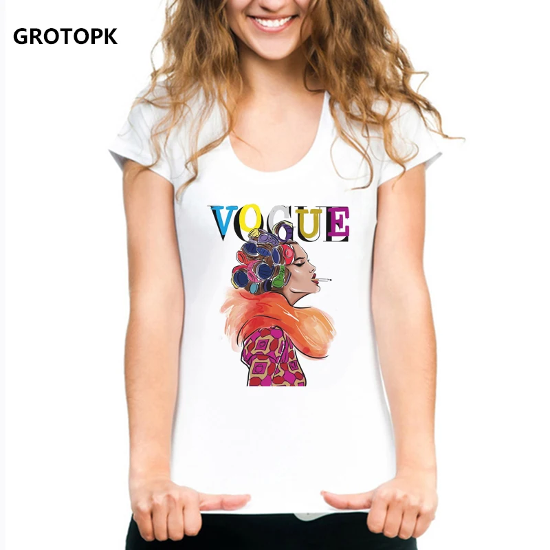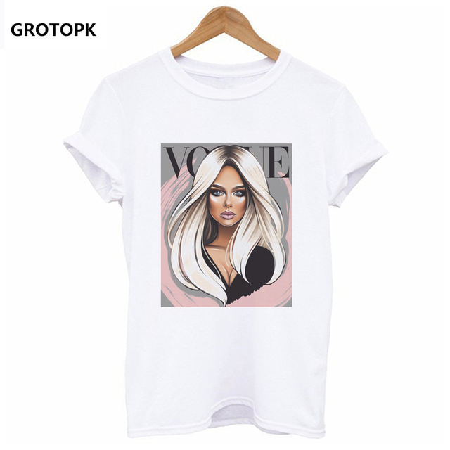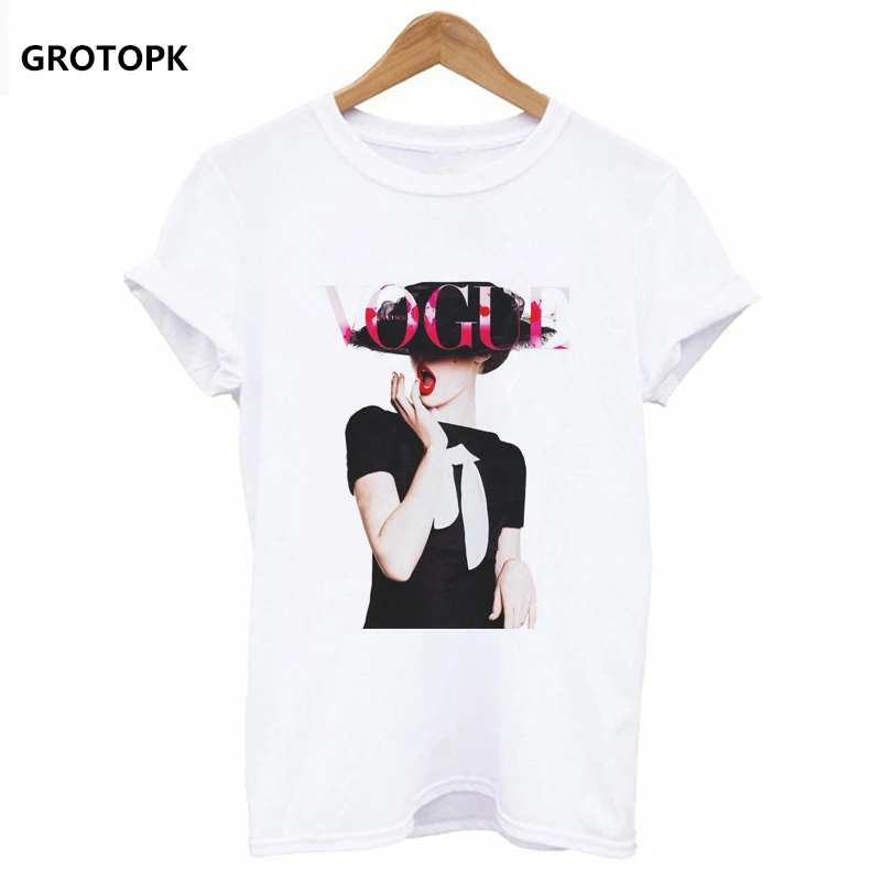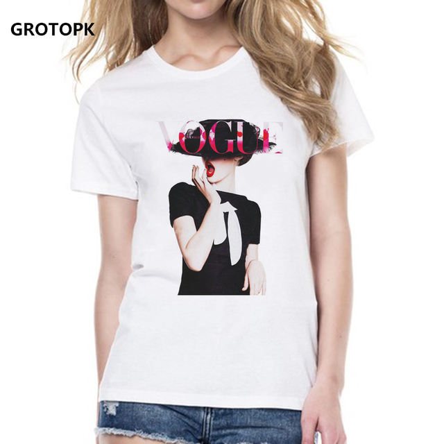 Vogue Beauty Print Female T-shirt White T-shirt for Women Fashion Ladies New Arrival 2019 Tumblr Tshirt Tee Shirt Aesthetic Top