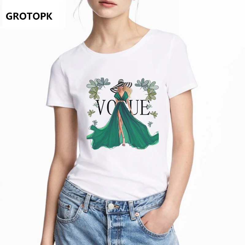 Vogue Green Element Female T-shirt Summer Princess Print Vintage T Shirt New Arrival 2019 Funny T Shirts Women Harajuku Top Tees