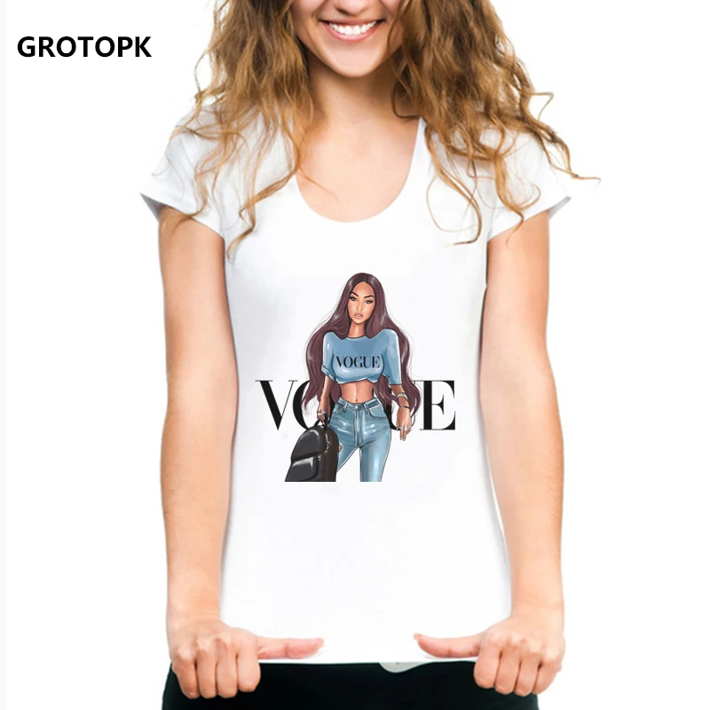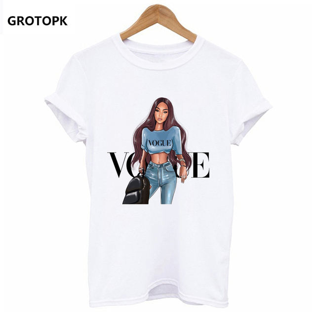 Vogue T-shirts for Women Summer 2019 Fashion 100% Cotton Print Tee Shirt Femme Cotton Vogue T Shirt Streetwear Harajuku Tops