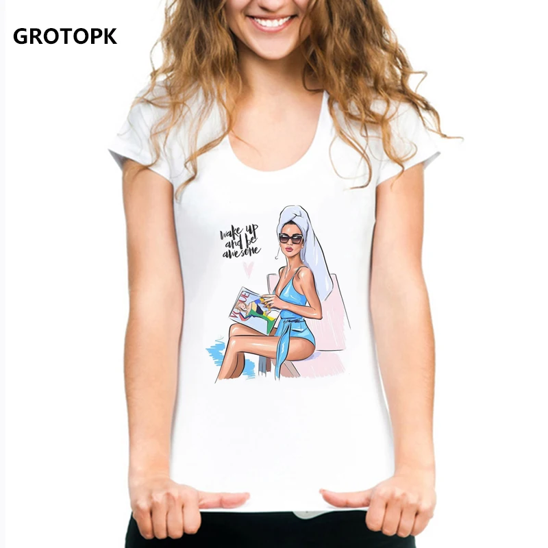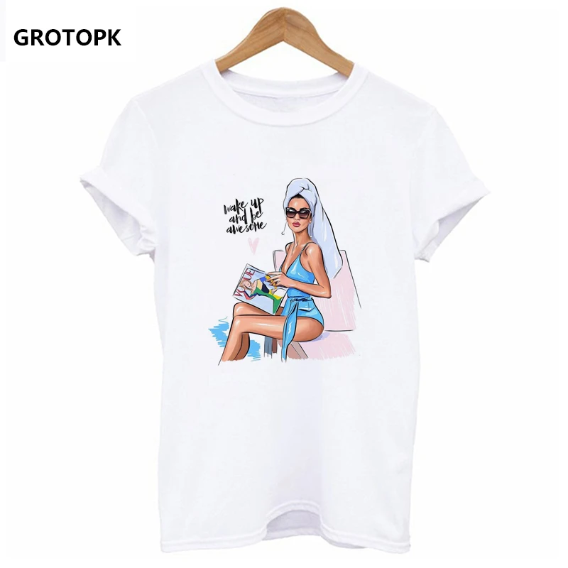 Wake Up and Be Awesome T-shirt Hipster Funny Tshirt Printing Tees Summer White T Shirt Tumblr Women Tops Vogue Tshirt Streetwear
