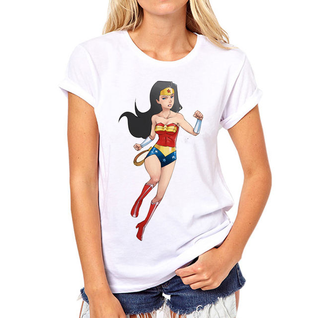 Woman Logo Comics Printed O-Neck T-shirt Top Tee Shirts Clothing Camiseta Short Sleeve Wholesale Women T Shirts N5-2#