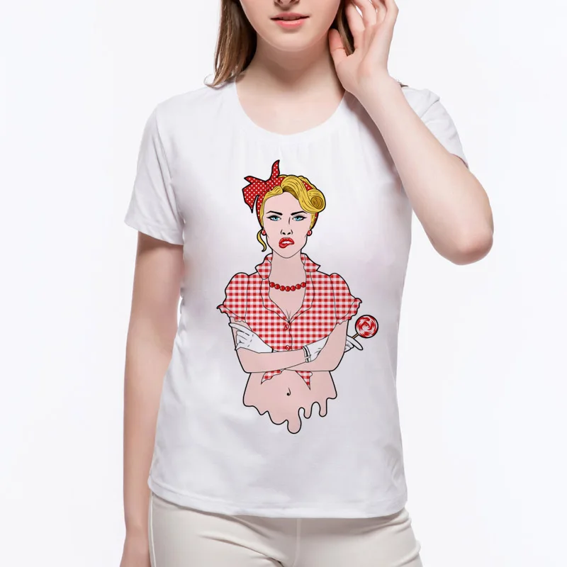 Women Eat Lollipop Lady T-shirt Graphic Girl Tees Tshirt Women Lady Gaga Short Sleeves T-shirts Camisas Femininas N12-4#