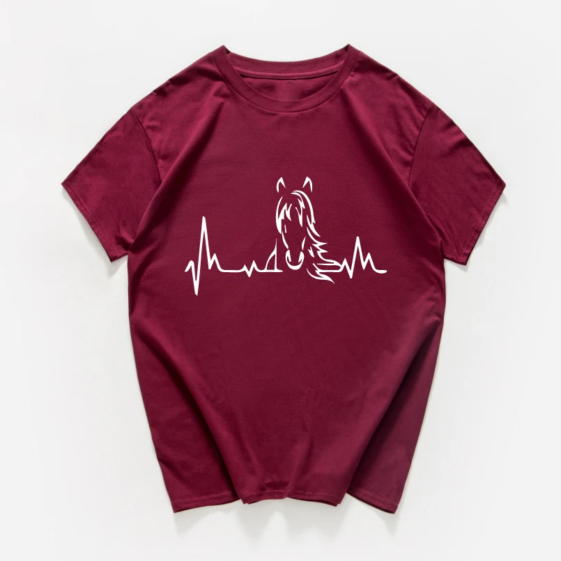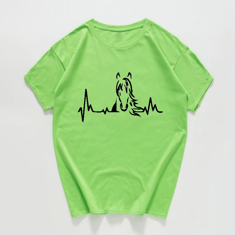 Women Girl Heartbeat of Horse T Shirts women Summer Style Cotton Cute Horse oversized vigtage Woman T-shirts Female Tee Tops