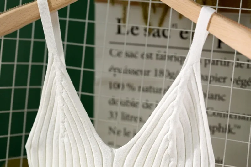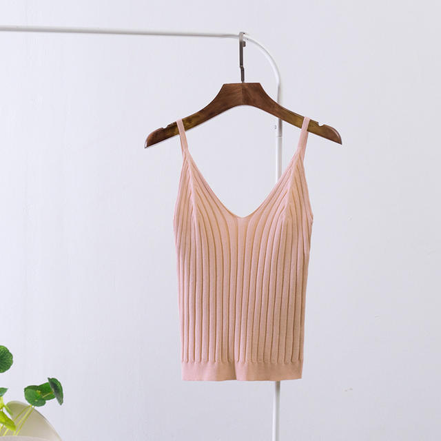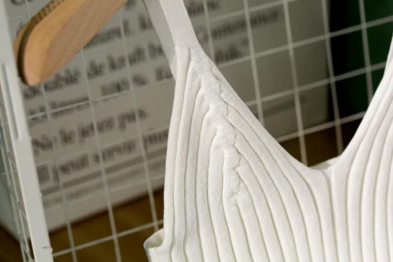 Women Sexy Knitted Crop Top Crop Sleeveless Cropped Vest Slim Sling Knitted Tank Top V-neck Plain Camisole High Elastic Camis