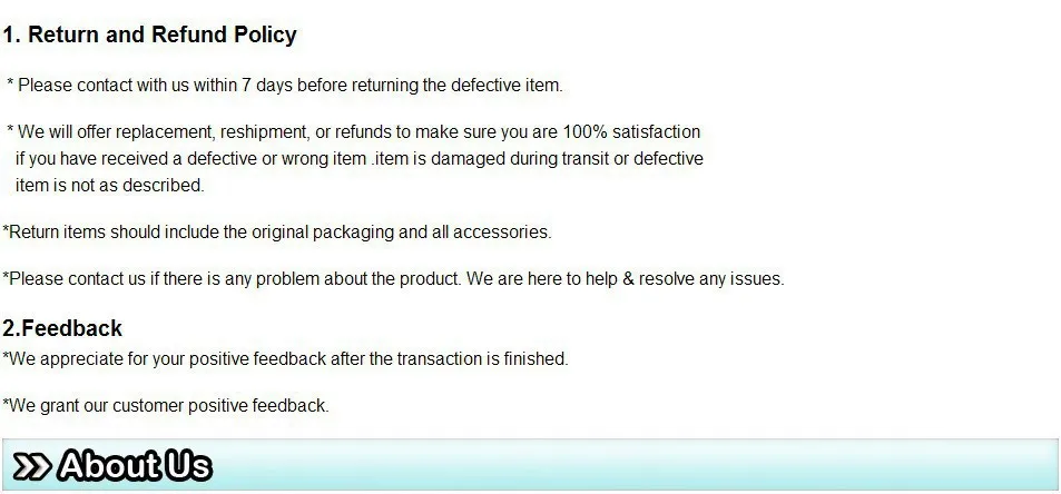 Arrange your return for a full refund, we've got you covered with our full Buyer protection