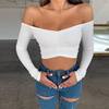 women T-shirts sexy and club fashion female T-shirt long sleeve off shoulder solid color lady Tshirt autumn basic tees