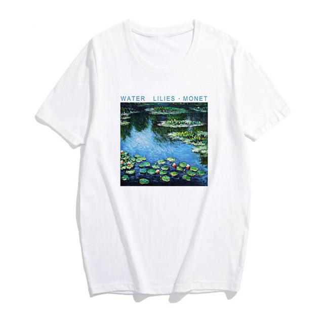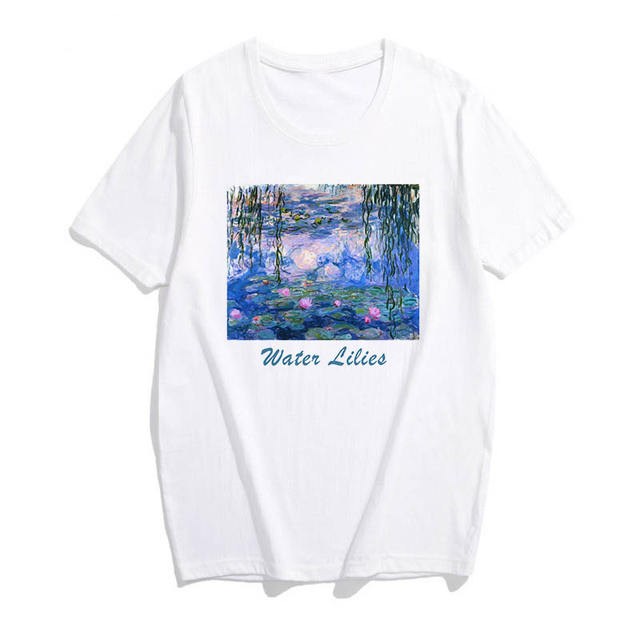 Women’s Summer Fashion Water Lilies Monet Print Casual New Fashion Big Size Letter Cartoon Oil Painting Harajuku O-Neck T-Shirt
