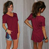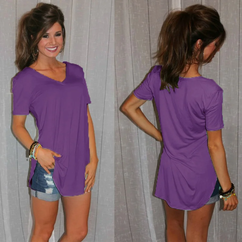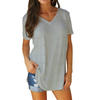 Women’s T-shirt Summer Plus Size Basic Long T Shirt Top Women Solid V Neck Short Sleeve Long Casual Women Loose Tee Shirt Femme