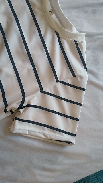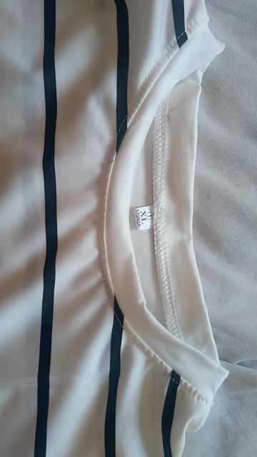 The photo did not do but the T-shirt is very good. The seams are very dipped, XL-took at 46. Just perfect, but I have a big bust and I like things to be not tight but loose.