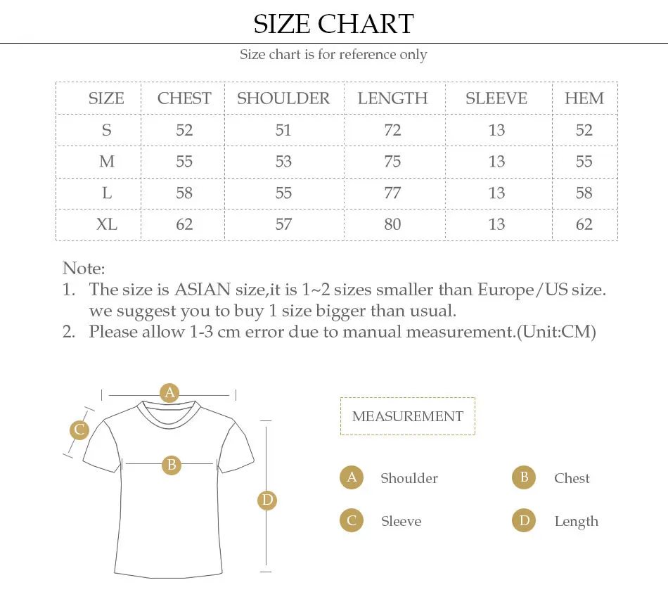 Nice T-shirt! The size table is correct in the product description. Thank you!!!