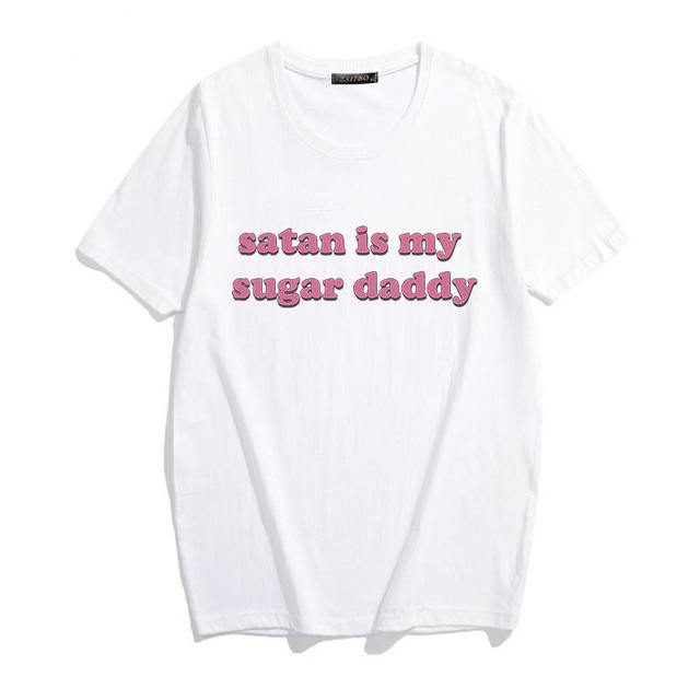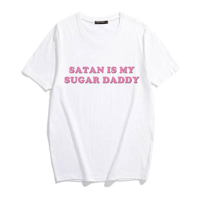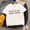 Yes Daddy Satan Is My Sugar Daddy Aesthetic pink Letter print Kawaii tops Summer Cute Ulzzang Harajuku Casual Chic women t-shirt