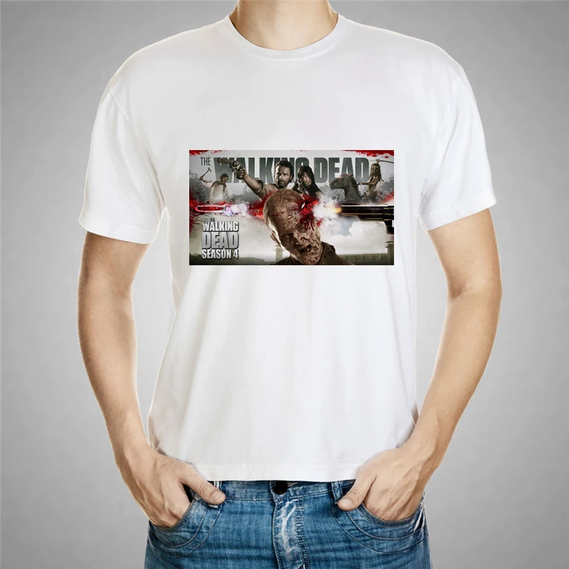 Zombie personality printing T-shirt Walking Dead cartoon printed male tops hipster funny cool tee shirts Anime men t-shirt 62-9#